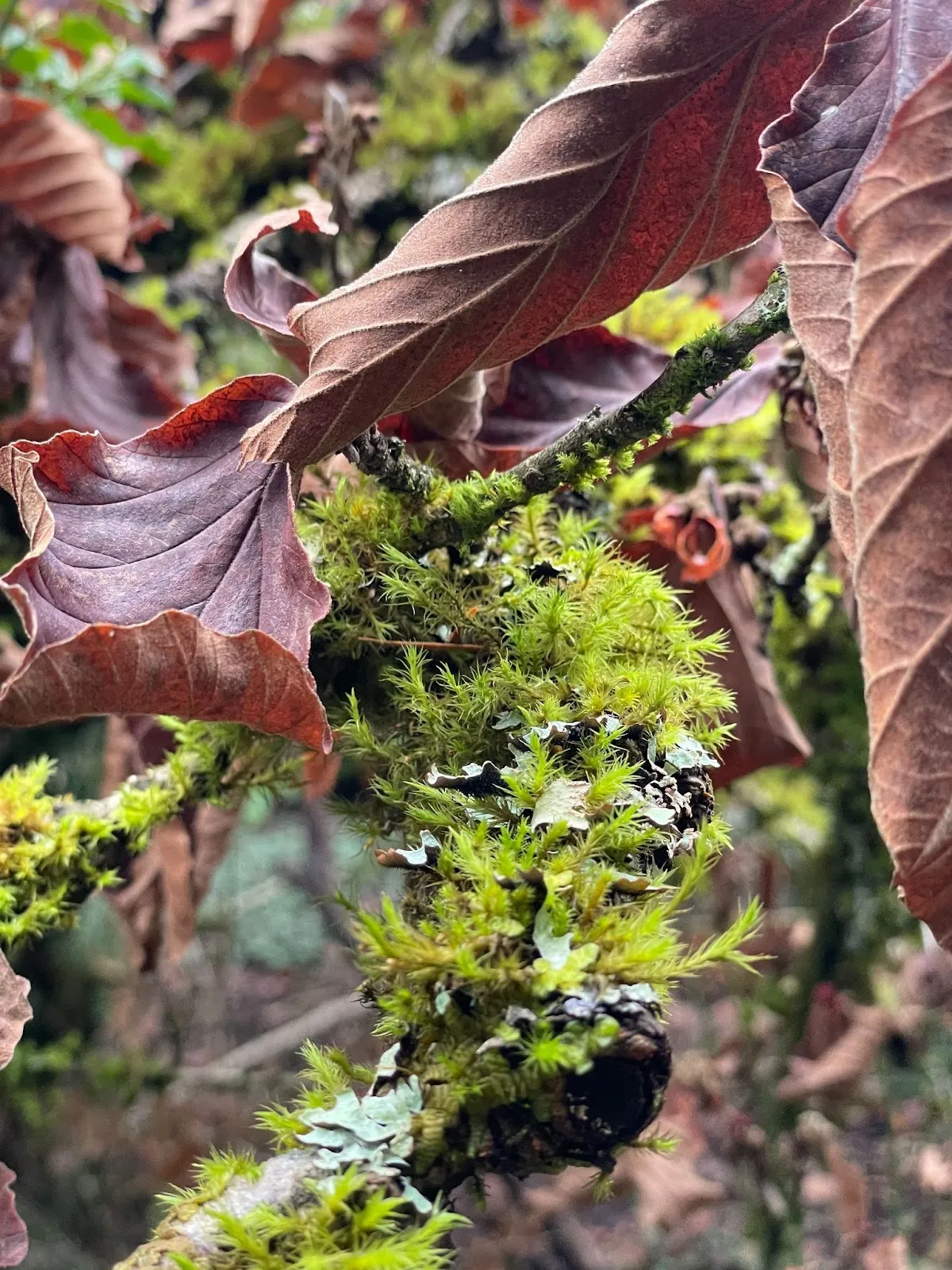 I felt through this activity that I was getting closer, in some subtle way to the plants, as I permitted myself to shove my camera deeper and deeper into the bramble. Walkers who passed didn't seem to mind the nature photoshoot I was having. Nor did the plants. I took care not to disturb them, to not break branches, and to try to not step on the ground cover where it could be avoided. Tuning into my surroundings this way gave me the sense that sometimes the proximity of plants to one another, like the lichen on the branch, was evidence of some kind of ecosystem, perhaps even symbiosis, that was visually legible in the surface of the plants. All of my doubt and uncertainty of what I was seeing was only leading me to feel that I simply was illiterate when it came to plants and that, were I a botanist, the data kept in the Arboretum's collection would be rather more available for me to decode, analyze, and make use of.