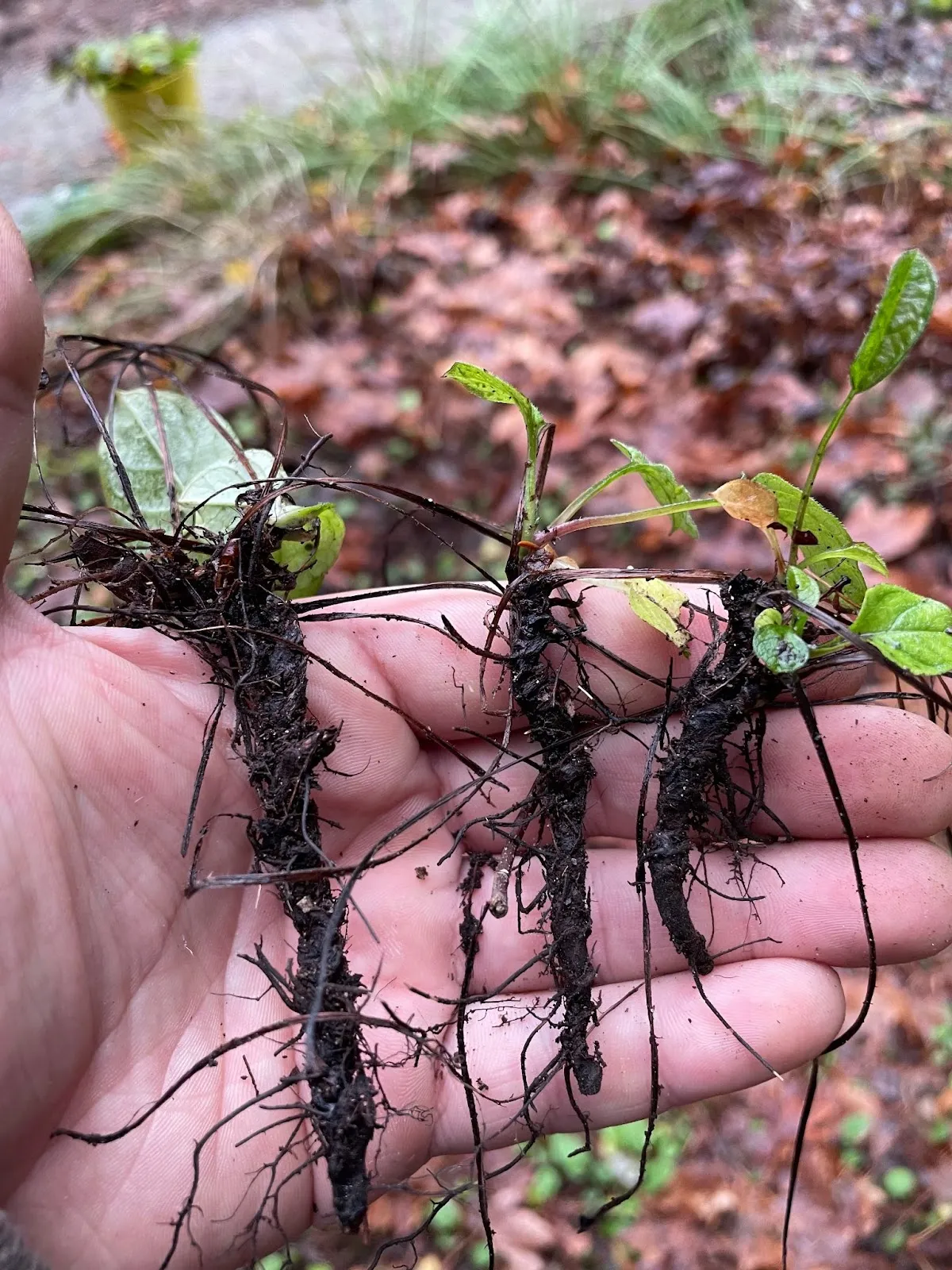 underground stems to propagate (he pulled up a rhizome to show me --see photo-- I later pulled up some additional ones, trying to do it myself. he told me I could keep them and propagate them at home, but that technically I wasn't allowed to do this but he'd let it pass. wow, a gift! I wrapped them up in a AI2 (Allen Institute for AI) bandana and put them in my backpack. Now they're sitting in a jar, waiting to be propagaged tomorrow. This is what I mean by open ecosystem, humans, plants, all are entering and existing this system all the time)
